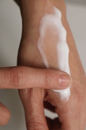 手のひらに少量を取り、手のひらで十分にのばし、肌全体になじませてください。